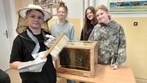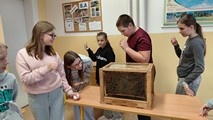 V praktické části mohli žáci prozkoumat skutečný včelí úl s plástvemi, vzít si do ruky včelařské vybavení a potěžkat si včelí vosk. Zároveň mohli také zblízka pozorovat živé včely v proskleném „včelotěsném" úlu. Na závěr ochutnali i med.